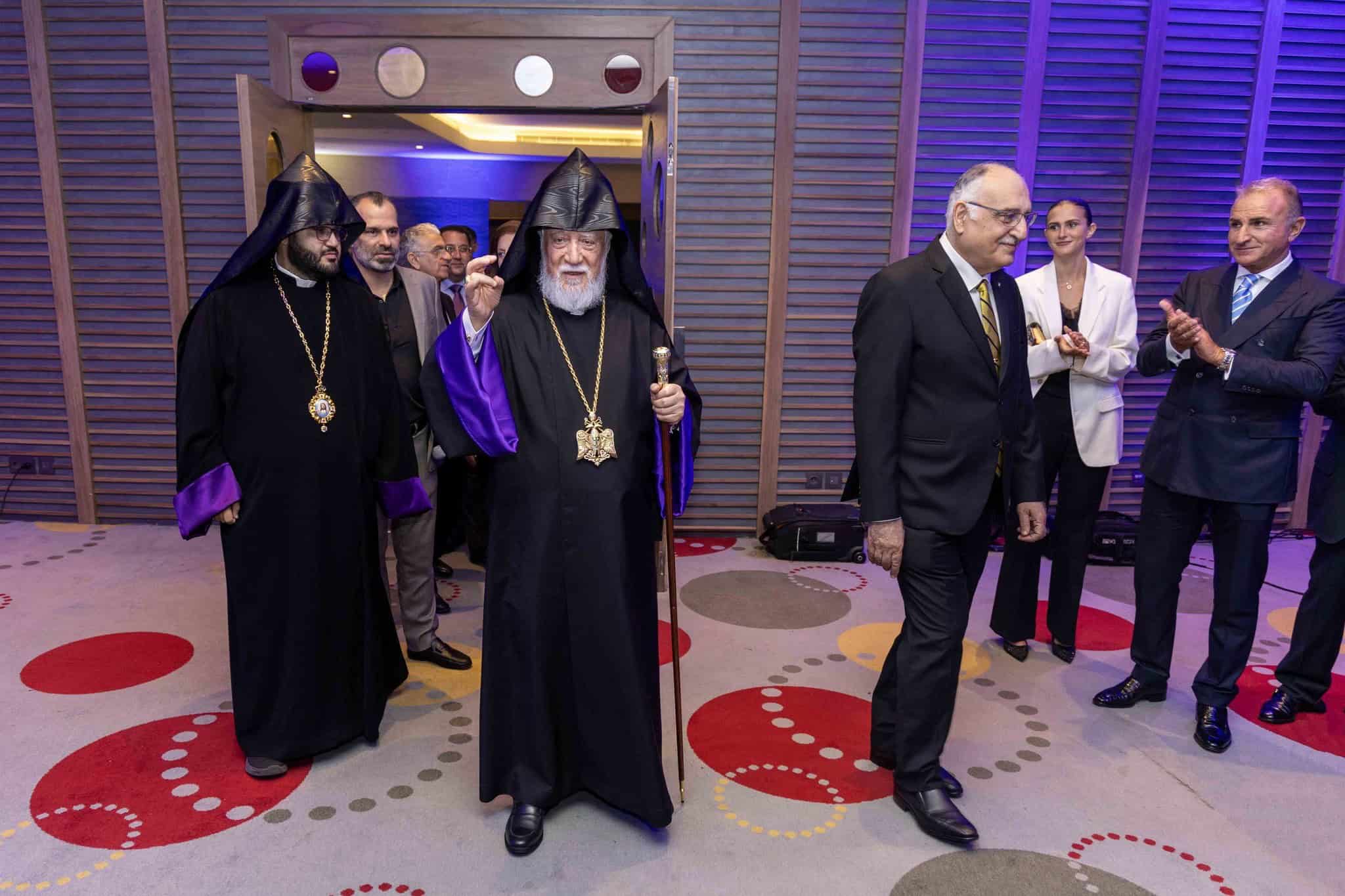On June 14, the Armenian Prelacy of Lebanon hosted a celebratory banquet honoring Catholicos Aram I’s 30th anniversary. Speeches by former Lebanese Youth and Sports Minister Vartineh Ohanian-Kevorkian, Representatives Assembly Chair Vicken Avakian, and Prelate of Lebanon Archbishop Shahe Panossian paid tribute to His Holiness’s service.
