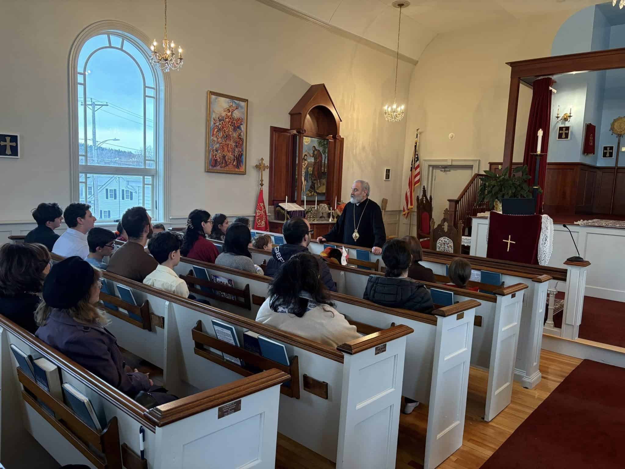 Following the Divine Liturgy, nearly twenty young individuals ranging from early childhood to young adults had the unique opportunity to participate in a special “Youth Forum” with their spiritual leader. Fr. Stephan offered welcoming remarks, after which he outlined the purpose and objectives of this brief encounter. He then introduced Archbishop Anoushavan and invited him to share his remarks with the young participants. The Prelate then stated that he wished to hear from the participants, who asked thoughtful and challenging questions about faith, culture, and various aspects of the life of the Church.