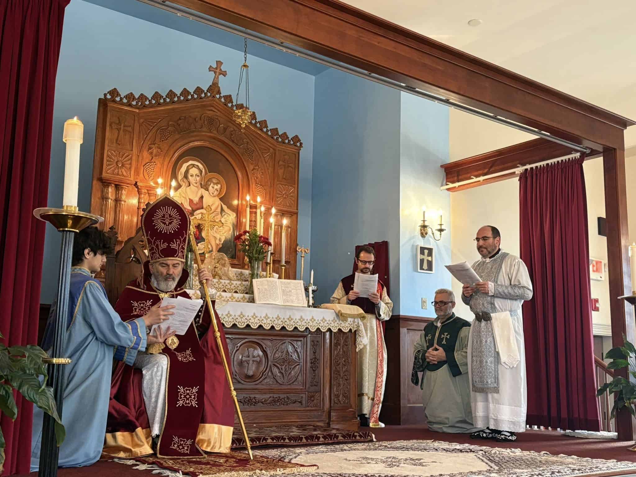 On Sunday, November 23, Archbishop Anoushavan celebrated the Divine Liturgy, during which Subdeacon Zareh Bulbulian, a long-time of member of the St. Gregory Church choir, was ordained a deacon. Fr. Stephan acted as his sponsor. In his message, Archbishop Anoushavan extolled the virtue of service in the Holy Church, reminding the parishioners—on the eve of the Thanksgiving holiday—of the importance of giving thanks to God with sincerity and humility. He congratulated the newly ordained deacon, presenting him as an example for all to emulate in service toward our Lord and the building up of our church.