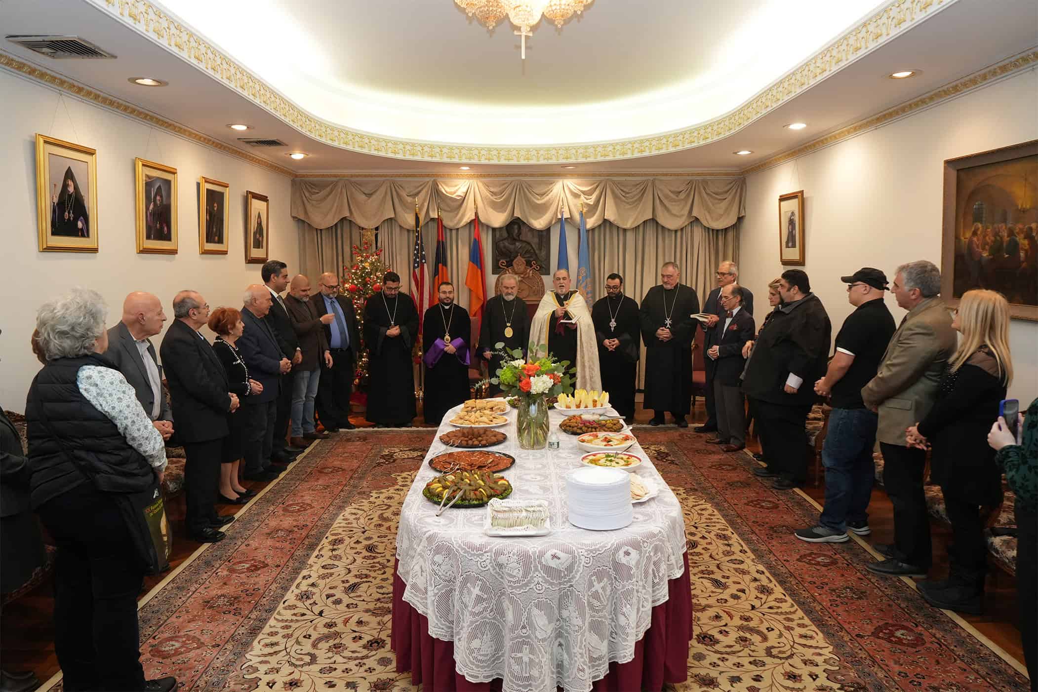 Թեմիս բարեջան Առաջնորդ՝ Գերշ. Տ. Անուշաւան Արքեպիսկոպոսի հրաւէրով ու նախագահութեամբ, Երեքշաբթի, 6 Յունուարին, Ազգային Առաջնորդարանին մէջ տեղի ունեցաւ Տնօրհնէքի աւանդական արարողութիւնը, զոր կատարեց Արժպ. Տ. Մեսրոպ Ա. Քհն. Լագիսեան՝ Ս. Լուսաւորիչ Մայր Եկեղեցւոյ հոգեւոր հովիւ։ Ներկայ էին Հոգշ. Տ. Վաչէ Վրդ. Պալըգճեան՝ Ռիճֆիլտի (Նիւ Ճըրզի) Սրբոց Վարդանանց եկեղեցւոյ հոգեւոր հովիւ, Արժպ. Տ. Նարեկ Ա. Քհն. Թրթռեան՝ Տակլըսթընի Ս. Սարգիս եկեղեցւոյ հոգեւոր հովիւ, Արժպ. Տ. Վահան Քհն. Գույումճեան՝ Թրոյի Ս. Խաչ եկեղեցւոյ հոգեւոր հովիւ, հիւրաբար քաղաքս գտնուող Գերշ. Տ. Պետրոս Եպս. Մանուէլեան՝ Վենեզուելայի հայ համայնքի հոգեւոր տեսուչ, ինչպէս նաեւ շրջանիս բազմաթիւ հաւատացեալներ։ Ներկայ էր նաեւ ՄԱԿ-ի մէջ Լիբանանի մշտական նորանշանակ ներկայացուցիչ՝ դեսպան Ահմէտ Արաֆա։
